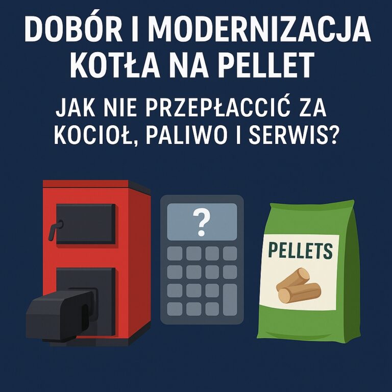 Dobór i modernizacja kotła na pellet – jak nie przepłacić? Poradnik serwisowy Dobór i modernizacja kotła na pellet – jak nie przepłacić za kocioł, paliwo i serwis? Kocioł na pellet można kupić „na oko”, „jak sąsiad” albo „żeby był zapas mocy”. Można też podejść do tematu technicznie: policzyć zapotrzebowanie na ciepło, dopasować moc i świadomie